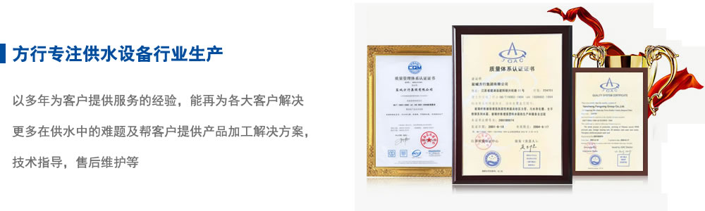 鹽城方行集團有限公司創(chuàng)建于一九七七年,四十多年來,在各級領(lǐng)導(dǎo)、國家行業(yè)協(xié)會和大專院校的大力支持幫助下,現(xiàn)已發(fā)展成為一家集研發(fā)、設(shè)計、生產(chǎn)、銷售、安裝、服務(wù)于一體的給排水設(shè)備企業(yè)。產(chǎn)品優(yōu)良,注重品牌。本公司先后榮獲“明星企業(yè)”、“中國鄉(xiāng)鎮(zhèn)明星企業(yè)”、“中國馳名品牌”等榮譽稱號。“方行”牌玻璃鋼夾砂管道、水箱被江蘇省建設(shè)廳指定為推廣產(chǎn)品;污水處理設(shè)備被專家評定為國家級新產(chǎn)品;方行牌玻璃鋼夾砂管道、玻璃鋼貯罐、一體化預(yù)制泵站、生活、消防箱泵一體化、污水處理設(shè)備、玻璃鋼水箱、不銹鋼水箱等產(chǎn)品先后被評為鹽城市名牌產(chǎn)品,江蘇省優(yōu)質(zhì)產(chǎn)品,江蘇省名牌產(chǎn)品。公司技術(shù)和售后服務(wù)日臻完善。在同行中享有很高的知名度、美譽度。以信為本,廣拓業(yè)務(wù)。本公司始終恪守“持之以恒、誠信為本”的經(jīng)營宗旨,持續(xù)發(fā)揚自強不息,順勢而上,趨利避弊,不斷推動產(chǎn)品發(fā)展,為我國的給排水工業(yè),為我們的民族工業(yè)品牌的發(fā)展而做出自己的貢獻。堅持革新,與時俱進。公司一貫跟隨社會的發(fā)展堅持不斷革新、嚴謹規(guī)劃、精益求精的質(zhì)量方針。公司著重于環(huán)保新技術(shù)及給排水設(shè)備的創(chuàng)新研發(fā),已擁有多項國家專利技術(shù)。